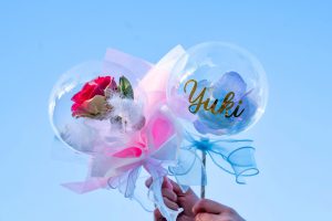 透明でキラキラなクリアバルーンはまさにシャボン玉のよう♪バルーンの中に羽や花びらなど好きなものを入れて、好きな色のリボンを付けたら完成です。