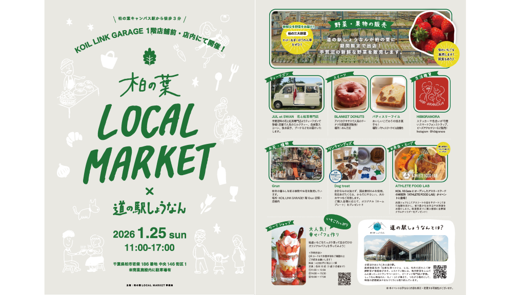 1月25日「柏の葉 LOCAL MARKET× 道の駅しょうなん」に出店します